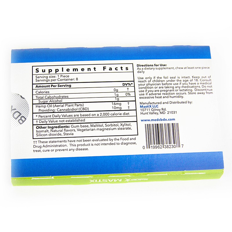MedCBDX is a CBD-infused Hemp Oil Chewing Gum. This gum is made using proprietary knowledge of adding active ingredients to a powdered gum base and then tableting the gum using direct compression. This makes a product that has complacent consistency from piece to piece.